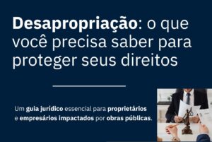 Um guia jurídico essencial para proprietários e empresários afetados por obras públicas. Se você ou sua empresa estão sendo impactados por intervenções do poder público — como a expansão da Linha Lilás do Metrô — este e-book foi feito para